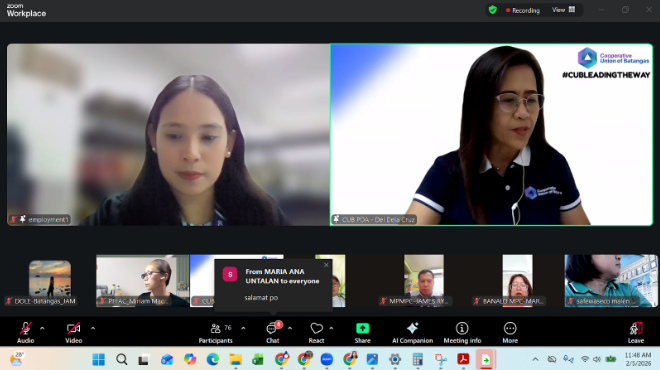 With the goal of equipping cooperatives with the existing labor laws and available programs for their availment, the Department of Labor and Employment IV-A through its Batangas Provincial Office served as resource speakers during a learning session held via Zoom platform, 05 February 2026.